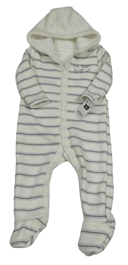 Nové - Bielo-světlemodro-tmavosivá pruhovaná tepláková kombinéza s nápisom a kapucí zn: Dunnes