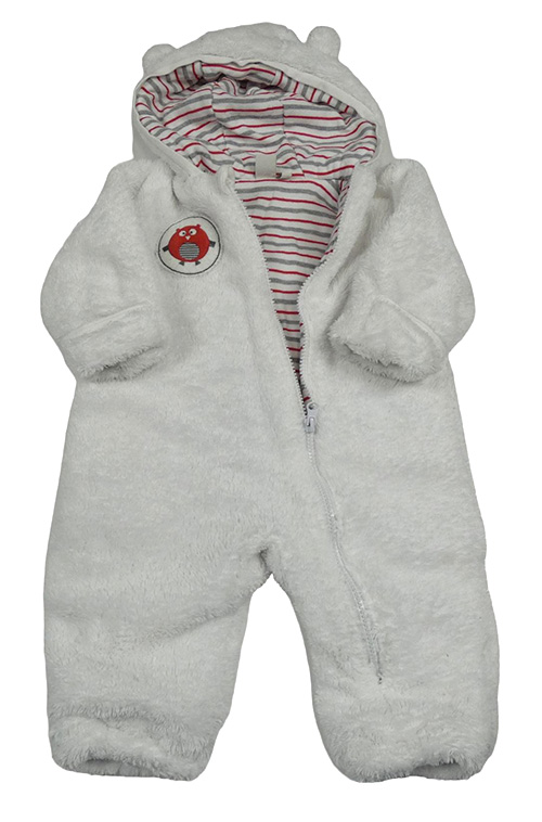 Biela chlpatá zateplená kombinéza so sovou a kapucňou