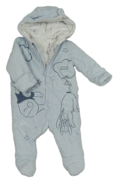 Světlemodro-biela pruhovaná zateplená kombinéza s Pú s přáteli a kapucňou George