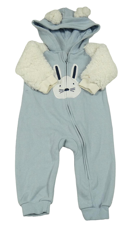 Světlemodro-smotanová teplákovo/huňatá kombinéza s králikom a kapucňou