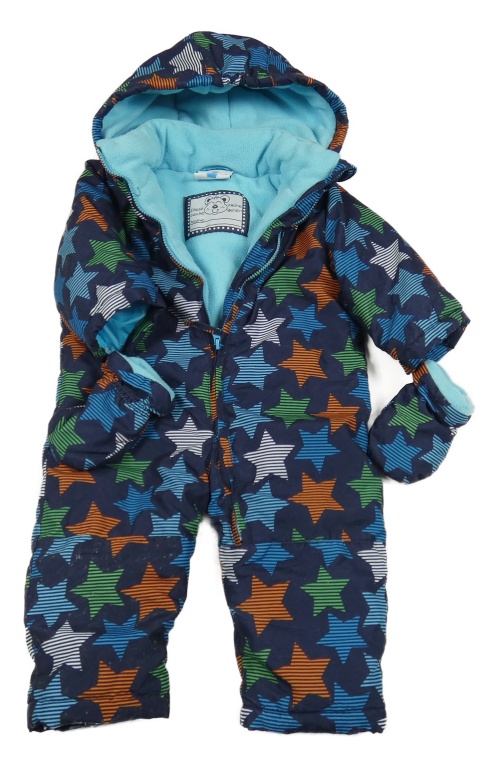 Tmavomodro-farebná šušťáková zimná kombinéza s hviezdami a kapucí + rukavice Topomini
