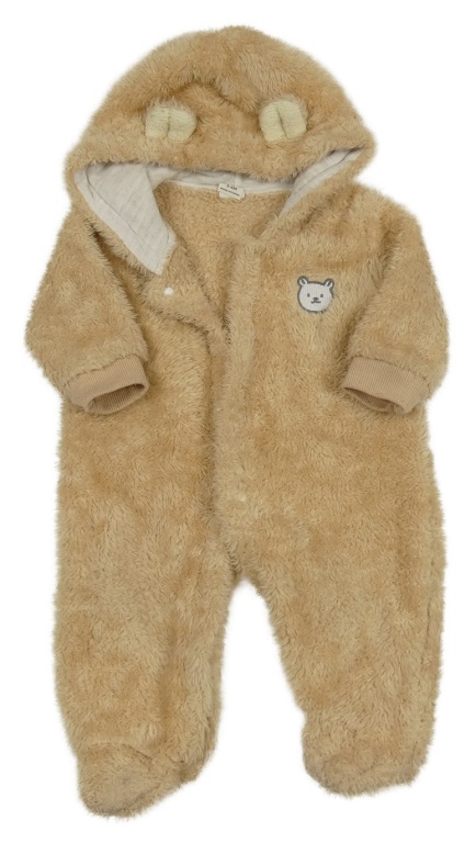 Béžová chlpatá kombinéza s medvěďom a kapucňou Shein