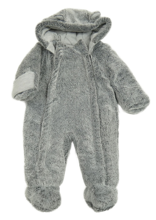 Sivá melírovaná chlpatá zateplená kombinéza s kapucňou George