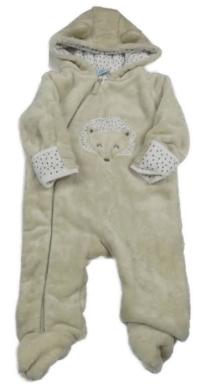 Svěblebéžová plyšová podšitá kombinéza s ježkom a kapucňou Topomini
