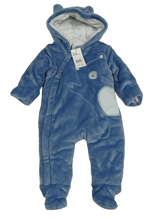 Nové - Modrá chlpatá zateplená kombinéza s medvěďom a kapucňou Mothercare