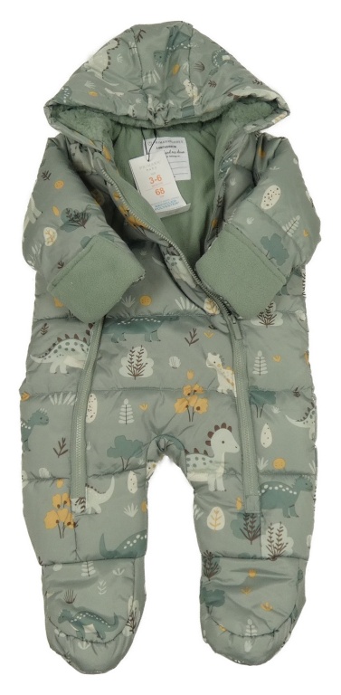 Nové - Zelená šušťáková zimná kombinéza s dinosaurami a kapucňou Primark