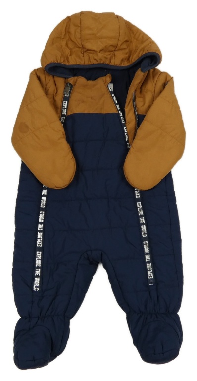 Tmavomodro-hnedá šušťáková zimná kombinéza s kapucňou C&A
