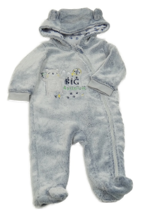 Modro-biela plyšová kombinéza s medvedíkom a kapucňou s uškami BABY