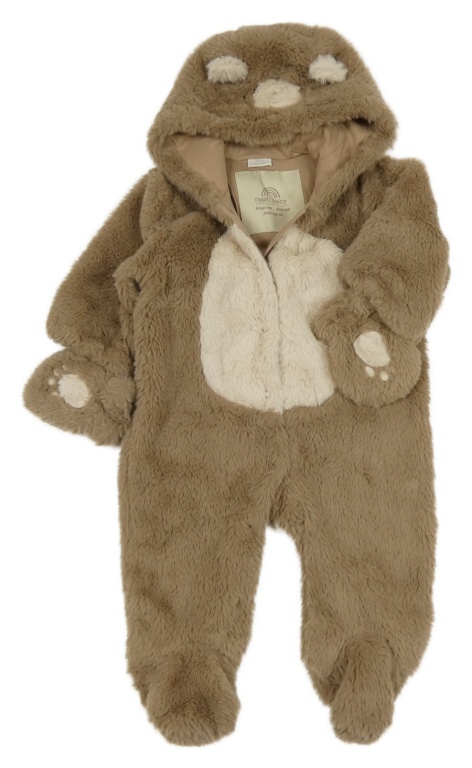 Hnedo-smotanová kožušinová podšitá kombinéza s kapucí - medvěď Next