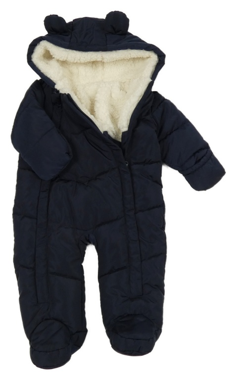 Tmavomodrá prešívaná šušťáková zimná kombinéza s kapucňou s uškami Matalan