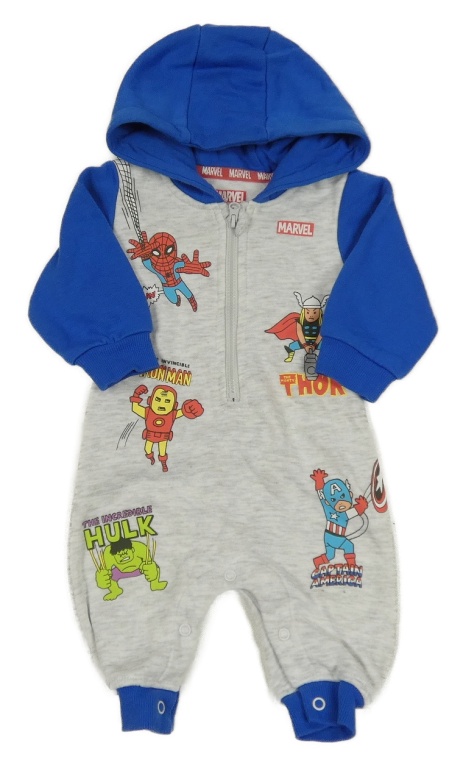 Svetlošedá -modrá melírovaná tepláková kombinéza so superhrdinami a kapucňou Marvel