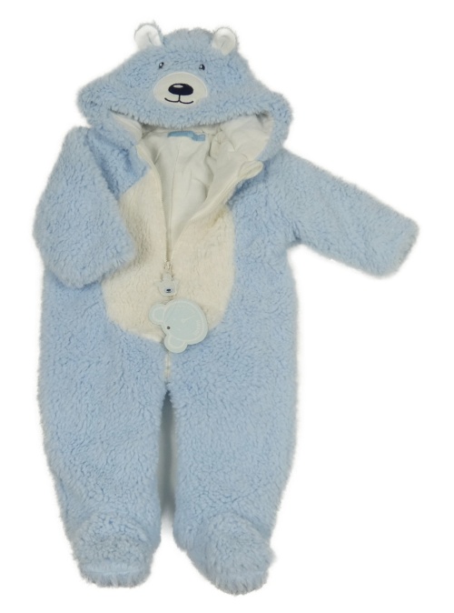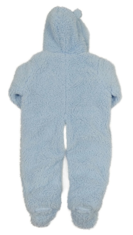 Nové - Světlemodro-biela huňatá zateplená kombinéza s kapucí - medvedík