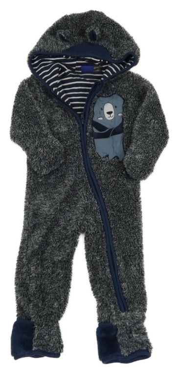 Tmavomodrá chlpatá podšitá kombinéza s medvěďom a kapucňou Lupilu
