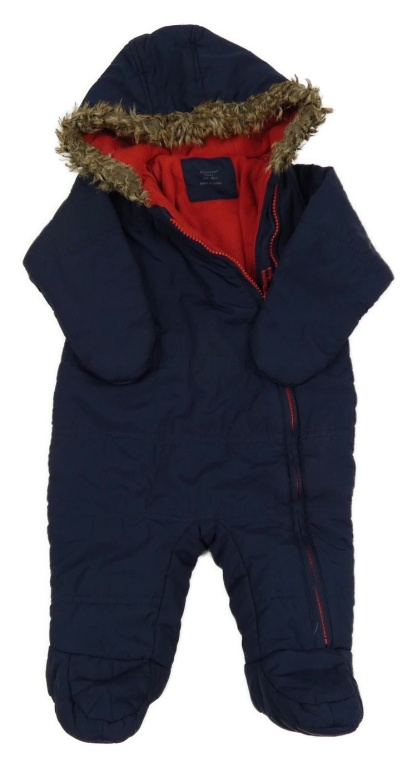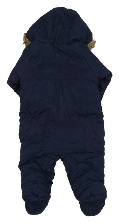 Tmavomodrá šušťáková zimná kombinéza s kapucňou s kožešinou Primark