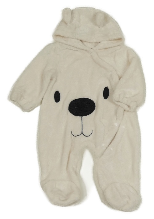 Biela plyšová kombinéza s medvěďom a kapucňou