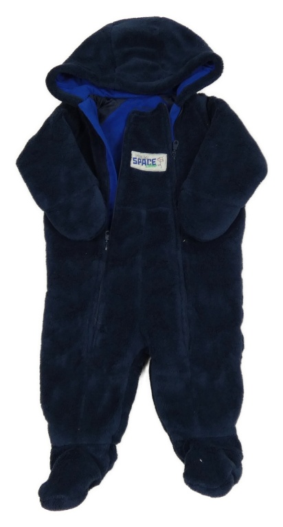 Tmavomodrá chlpatá podšitá kombinéza s nášivkou a kapucňou S. Oliver