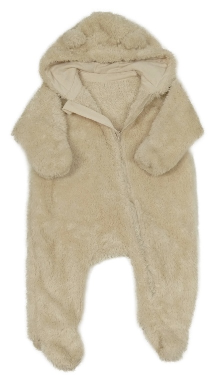 Béžová chlpatá kombinéza s kapucňou