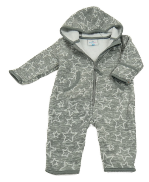 Sivá melírovaná fleecová kombinéza s hviezdami a kapucňou Topomini