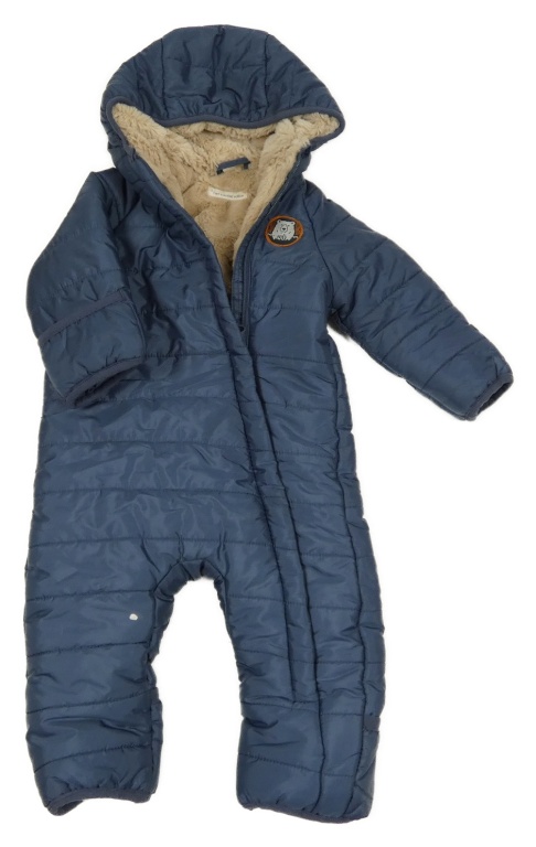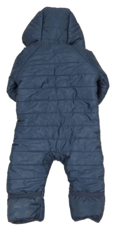 Tmavomodrošedá šušťáková prešívaná zimná kombinéza s medvěďom a kapucňou