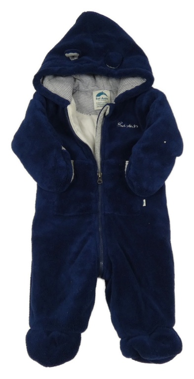 Tmavomodrá plyšová zateplená kombinéza s kapucňou