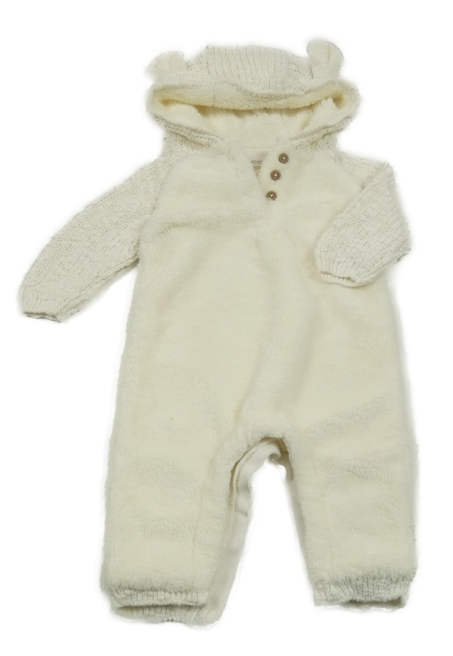 Smotanová chlupato/svetrová podšitá kombinéza s kapucňou s uškami Next