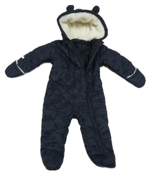 Tmavomodrá šušťáková zimná kombinéza s výšivkou a kapucňou