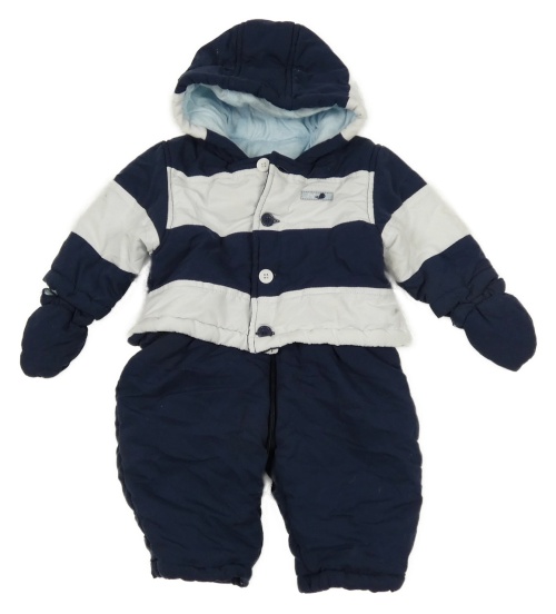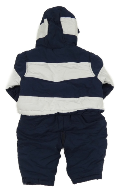 Tmavomodro-biela šušťáková zimná kombinéza s velrybou a kapucí + rukavice Mothercare