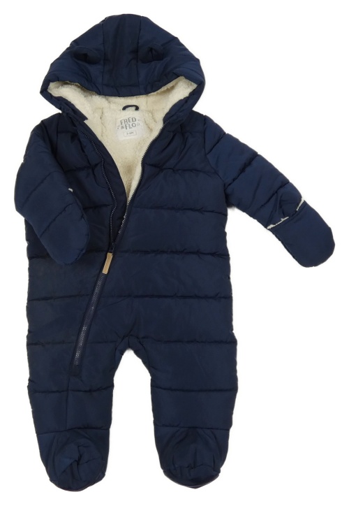 Tmavomodrá šušťáková prešívaná zimná kombinéza s kapucňou F&F