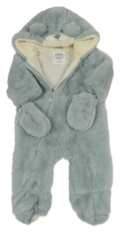 Svetlomodrá kožušinová zateplená kombinéza s kapucňou s čumákem + rukavice F&F