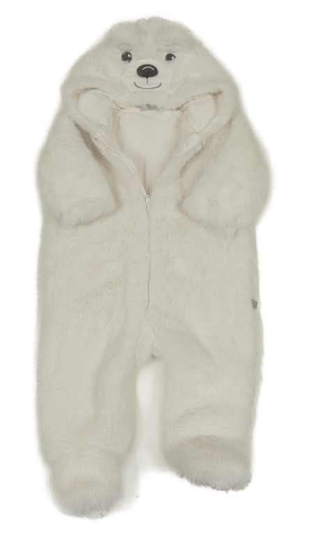 Biela chlpatá kombinéza s kapucí - medvěď