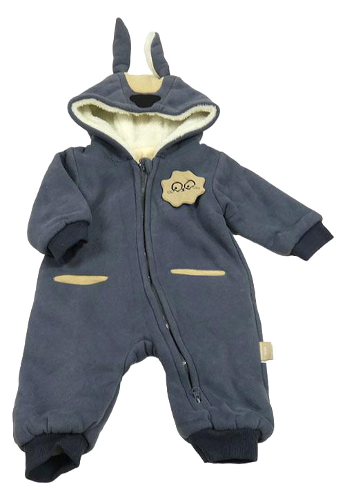 Tmavomodrá tepláková zateplená kombinéza s kapucí - králik