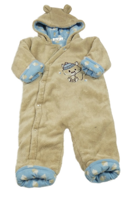 Béžová chlpatá podšitá kombinéza s veverkou a kapucňou Ergee
