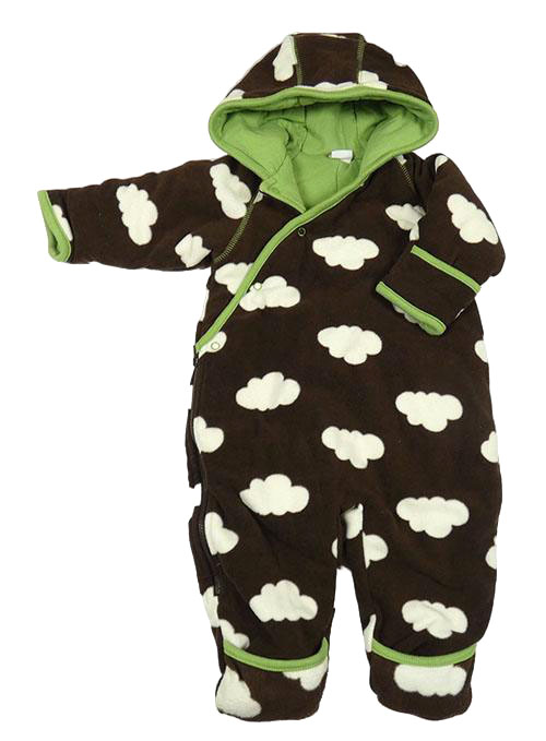 Hnedá fleecová zateplená kombinéza s mraky a kapucňou