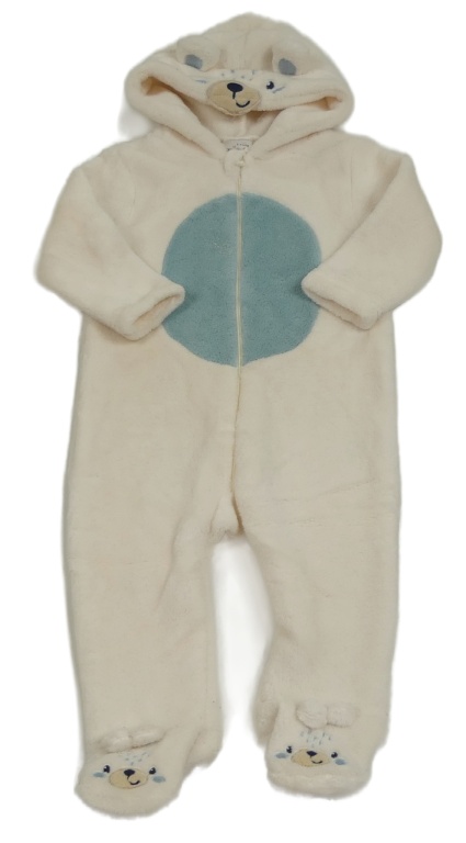 Vanilkovo-modrá chlpatá kombinéza s kapucňou