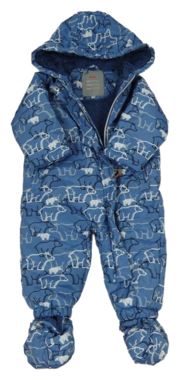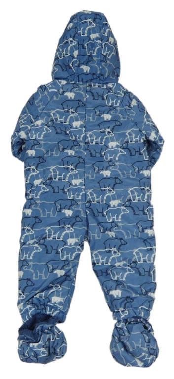 Modrá šušťáková zimná kombinéza s medveďmi a kapucňou