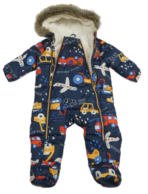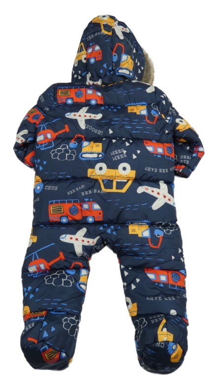 Tmavomodrá šušťáková zimná kombinéza s hasiči a kapucňou F&F