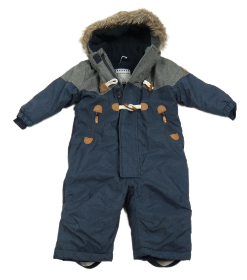 • Tmavomodro/šedá vzorovaná melírovaná šušťáková zimná kombinéza s kapucňou s kožešinou Topomini
