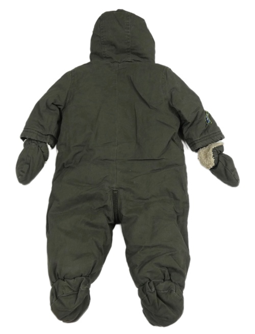 Khaki rifľová zateplená kombinéza s kapucí + rukavice Miniclub