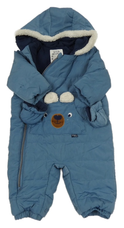 Modrá šušťáková prešívaná zimná kombinéza s medvedíkom a kapucňou C&A
