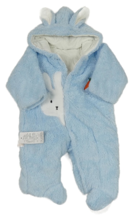Nové - Svetlomodrá kožušinová zateplená kombinéza so zajačikom a kapucňou