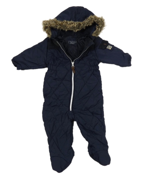 Tmavomodrá prešívaná šušťáková zimná kombinéza s kapucňou s kožešinou Next