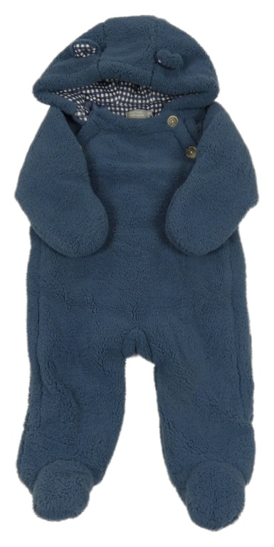 Tmavomodrá huňatá zateplená kombinéza s kapucňou