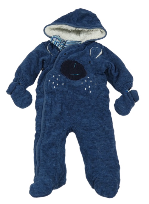Tmavomodrá fleecová zateplená kombinéza s ňufáčikom a kapucí + rukavice Next