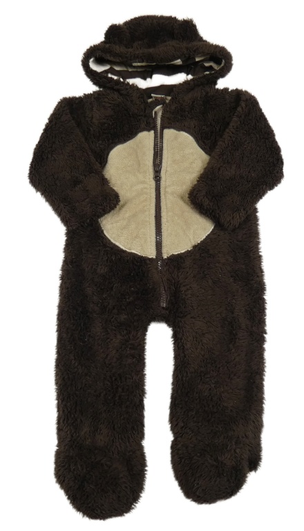 Hnedo-béžová huňatá podšitá kombinéza s kapucňou Tu