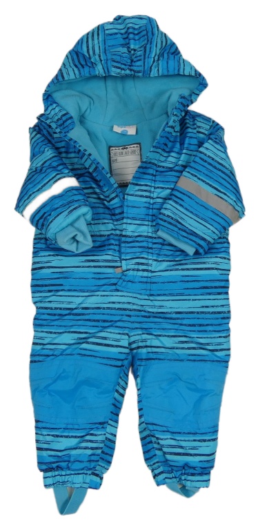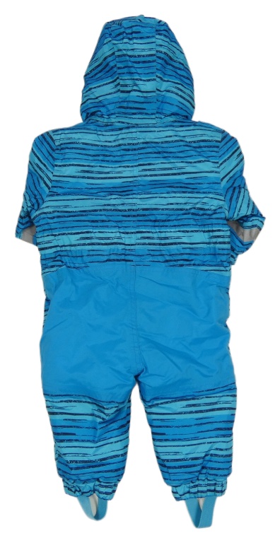 Modro-azurovo-čierna pruhovaná šušťáková zimná kombinéza s kapucňou Topomini