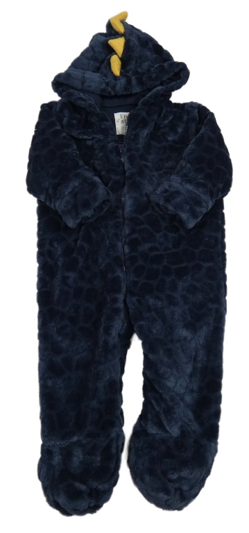 Tmavomodrá plyšová podšitá kombinéza s kapucňou s ostny F&F
