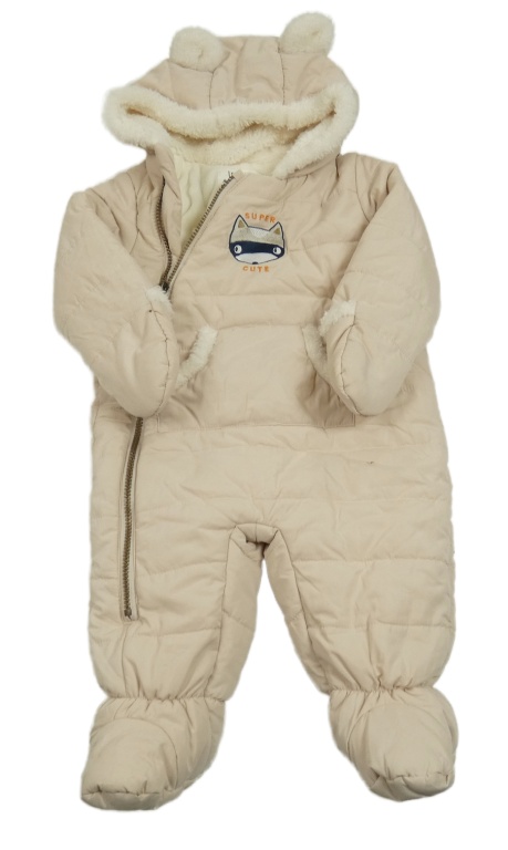 Smotanová šušťáková zimná kombinéza s medvěďom a kapucňou
