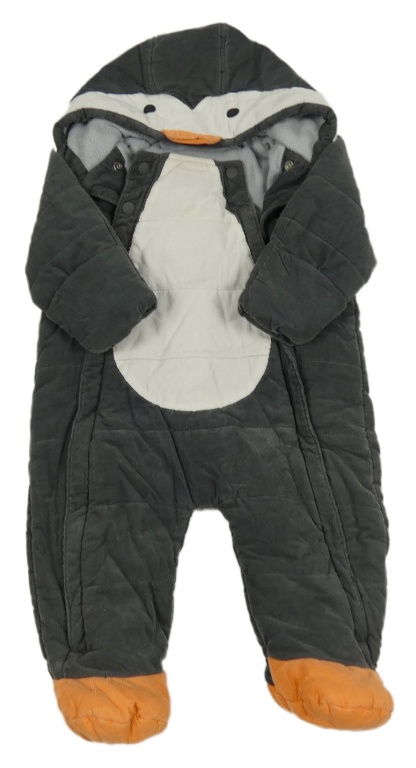 Tmavošedo-biela menšestrová zateplená kombinéza s kapucí - tučňák M&S