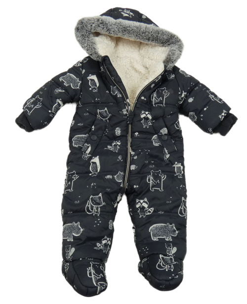 Čierna šušťáková zimná kombinéza so zvieratkami a kapucňou George