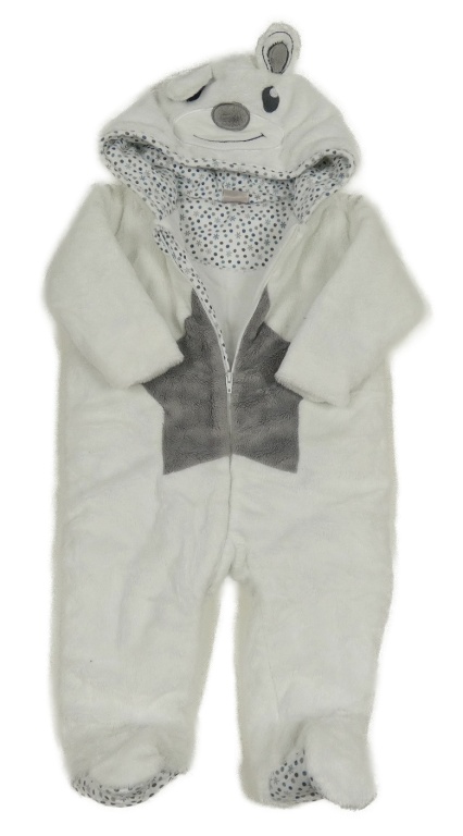 Biela chlpatá zateplená kombinéza s hviezdou a kapucí- medvěd zm. Smile
